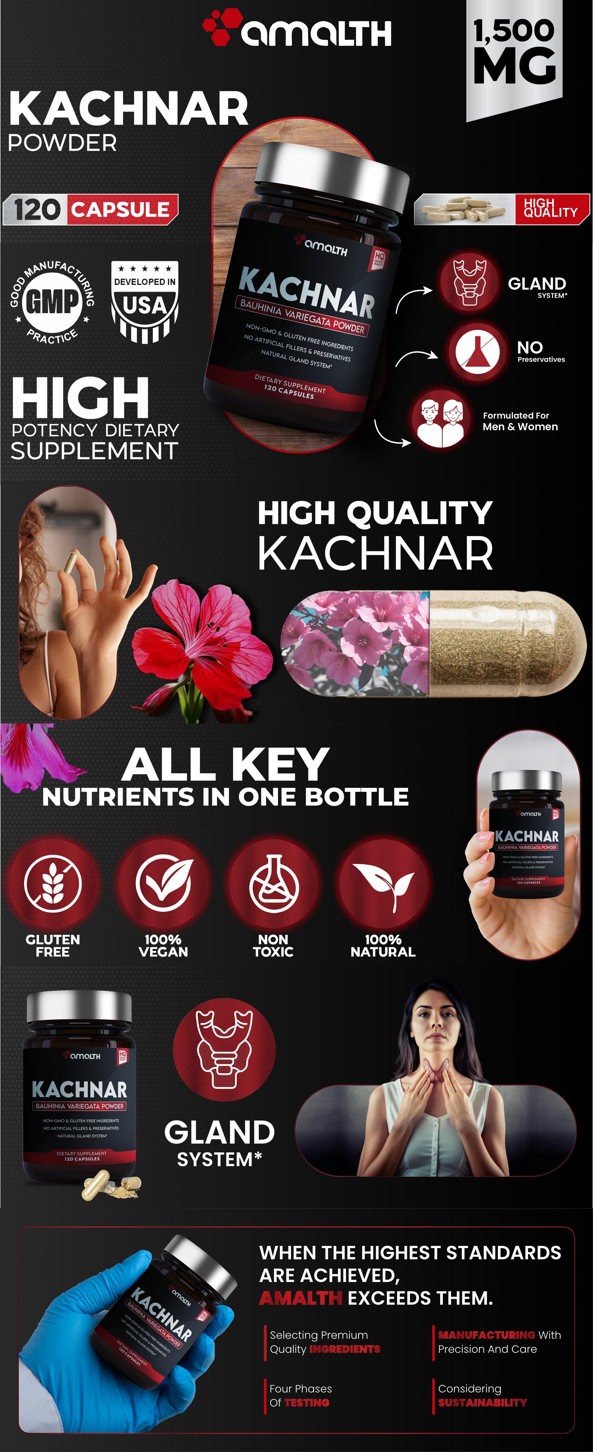 • FORMULATED WITH 1500 MG HIGH GRADE POWDER: Amalth Kachnar powder capsule is made from authentic and matured herbs. Our product contains pure and premium gradeKachnar powder. Each batch is prepared without the loss of active ingredients. Each capsule is crafted without harmful chemicals and preservatives.Our product does not contain any fillers or binders.